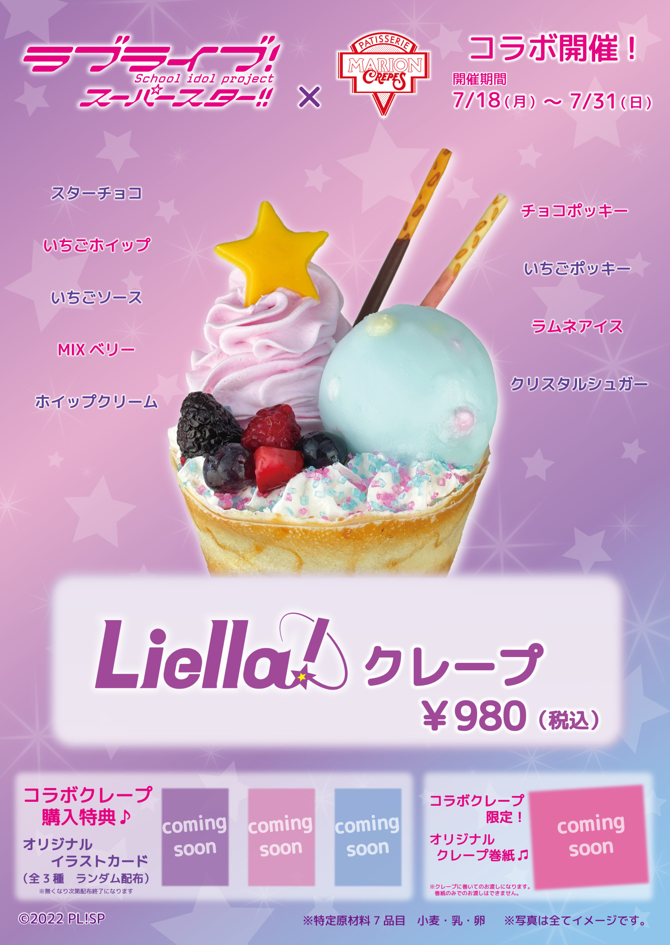 マリオンクレープ原宿竹下通り店より、ラブライブ!スーパースター!! コラボ「Liella!クレープ」発売のお知らせ